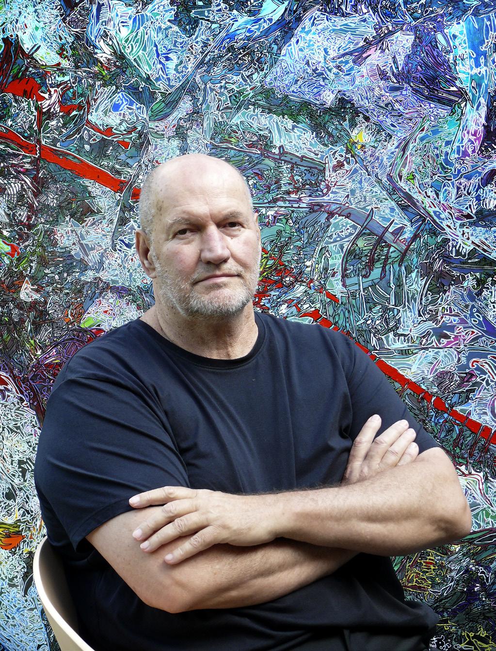 His work explores the dialogue between mankind and nature, between microscopic detail and sweeping landscapes. He has worked extensively with painting and glass art, using techniques that unite colour, texture, light, and organic form.